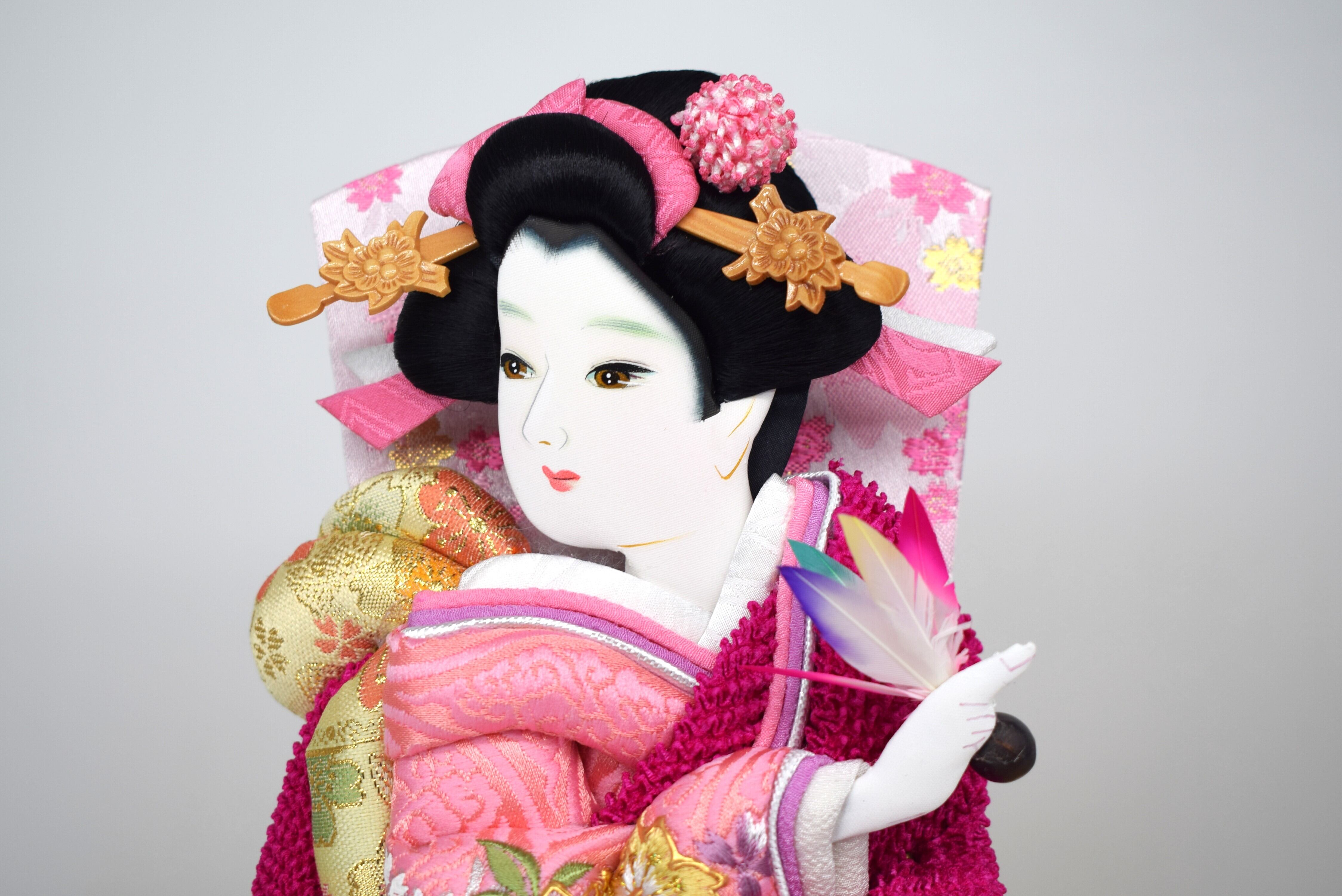 優しい表情のお顔と彩り豊かな羽根が、お祝いの席を上品に彩ります。