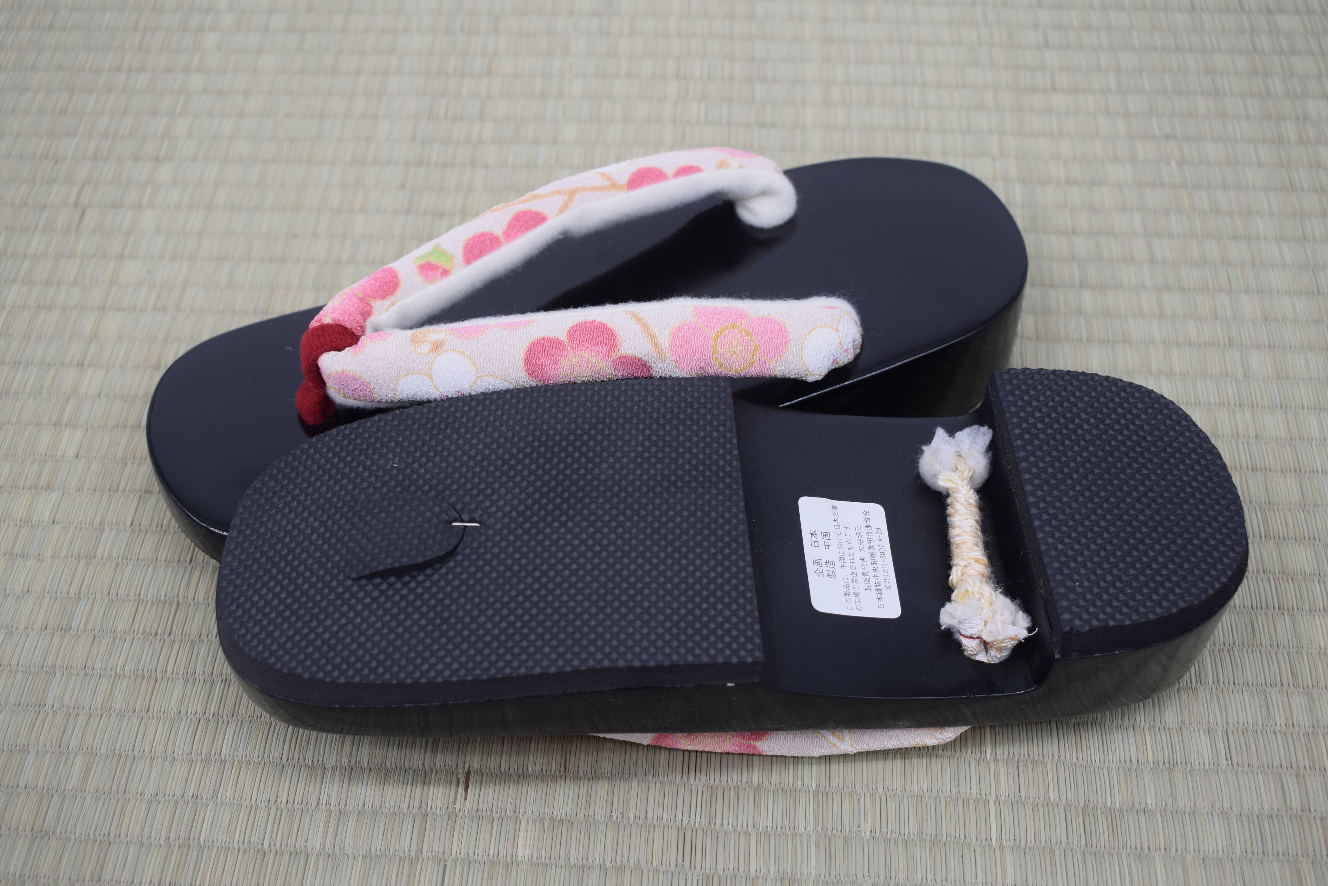 カラー:黒塗り(艶あり)+ 桜柄鼻緒(ピンク系)