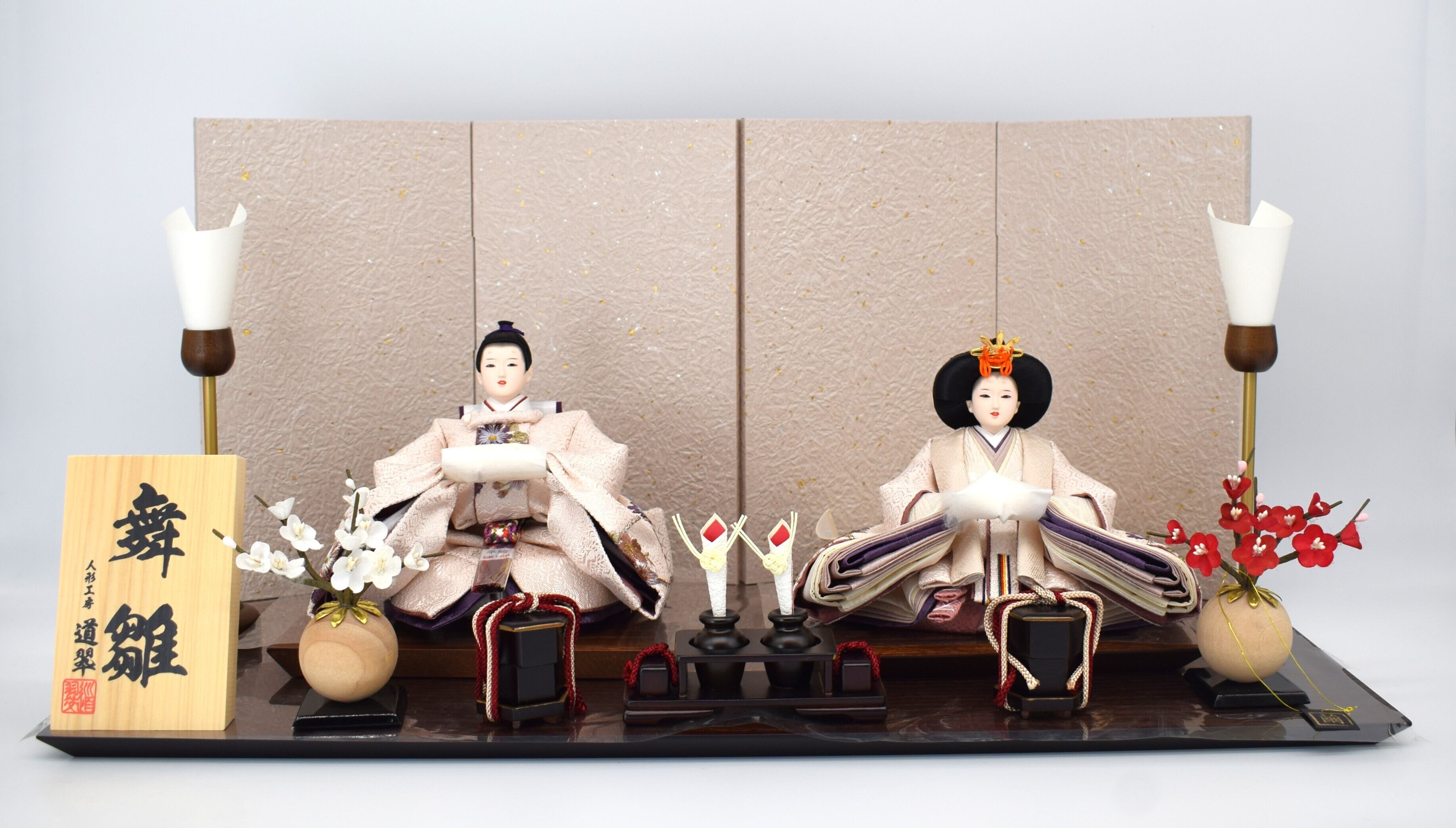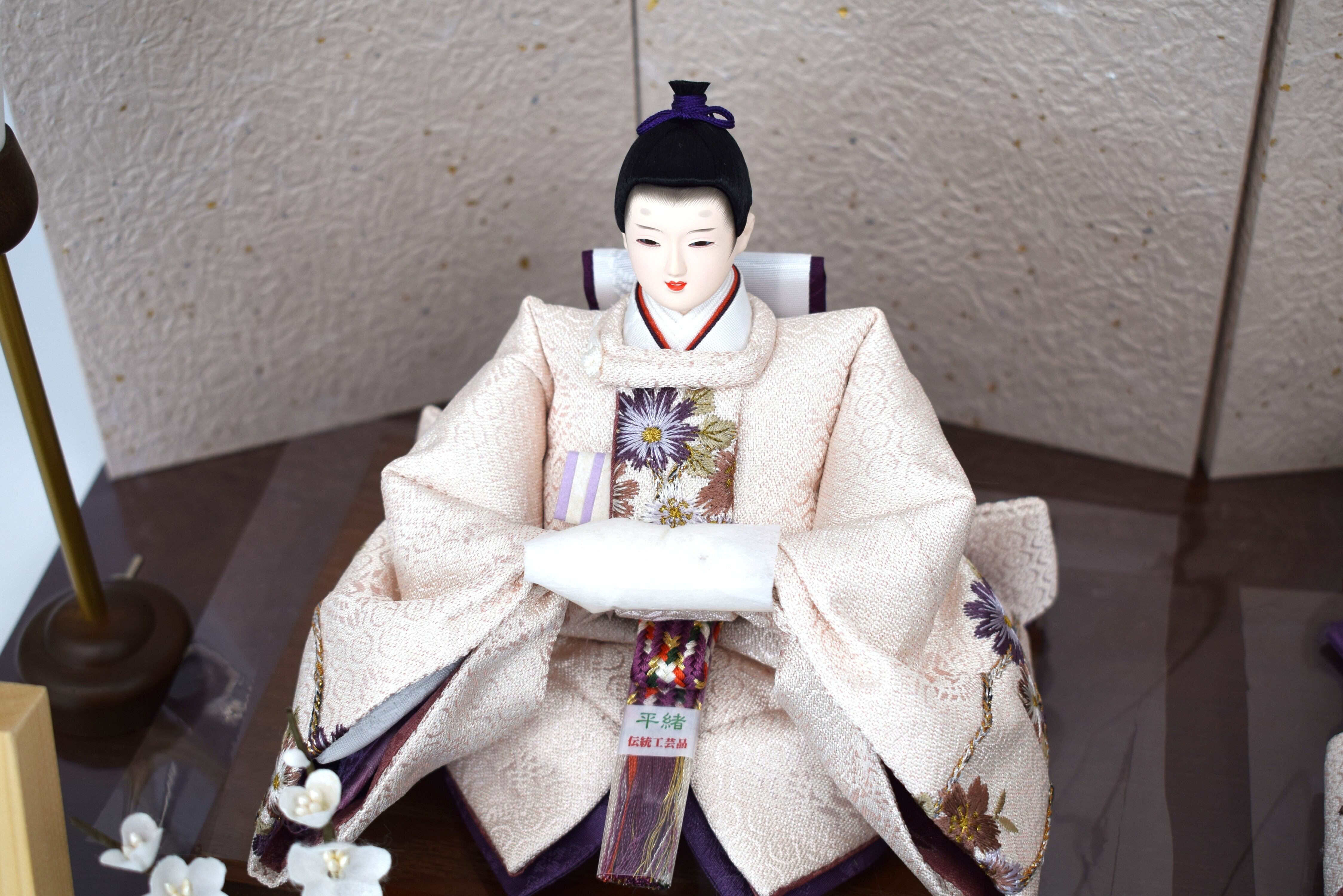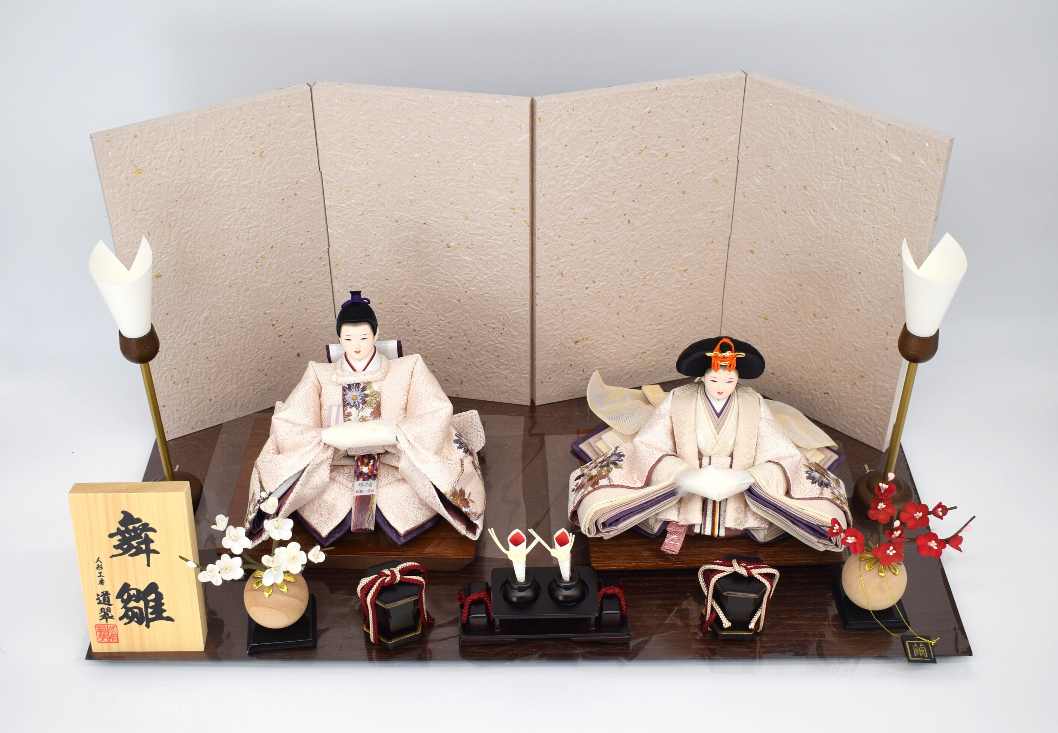 やさしい色合いと上品な刺繍が美しい「刺繍舞姫」シリーズの親王飾りです。