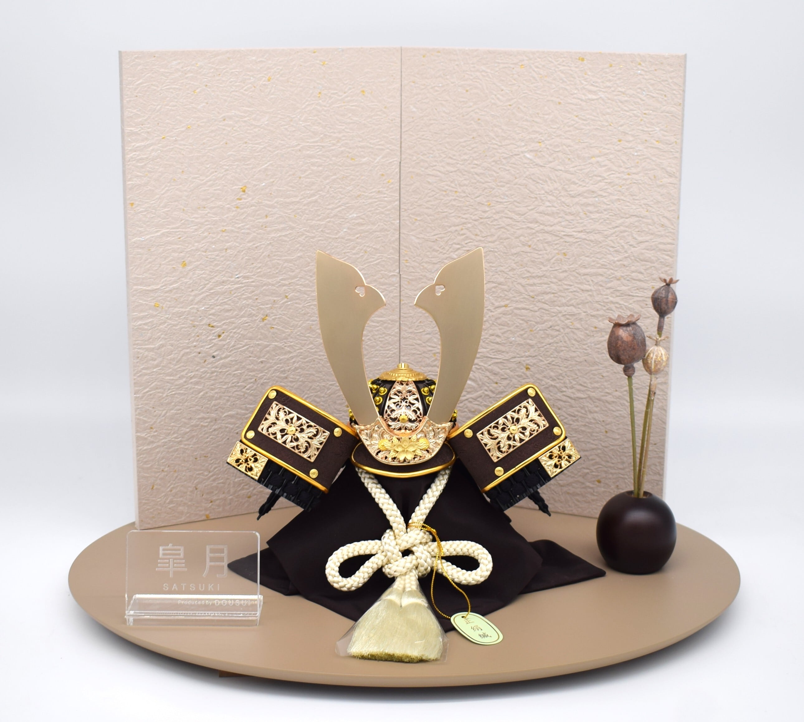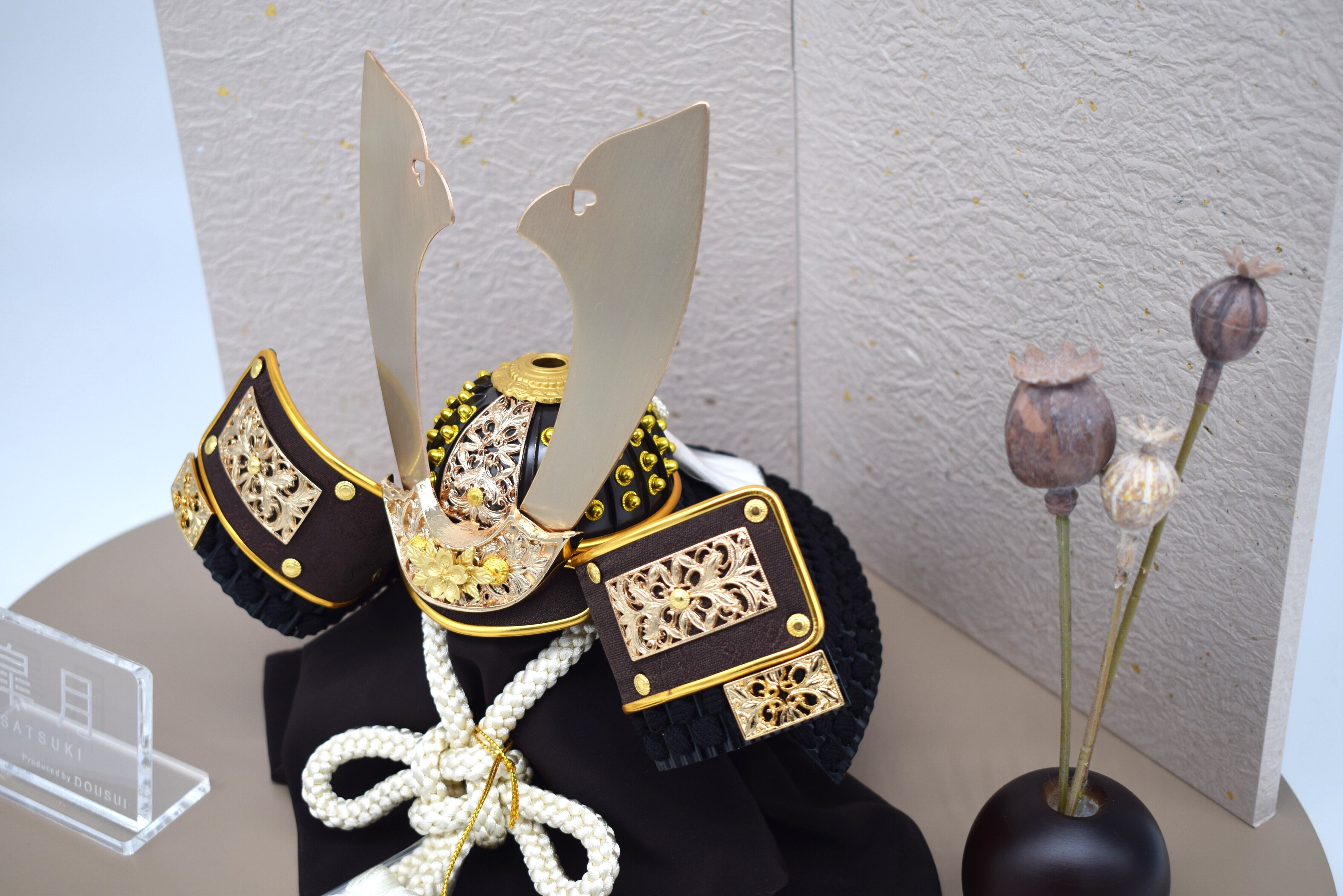 本作は、伝統的な兜の意味を大切にしながら現代のインテリアにも調和するようデザインされた