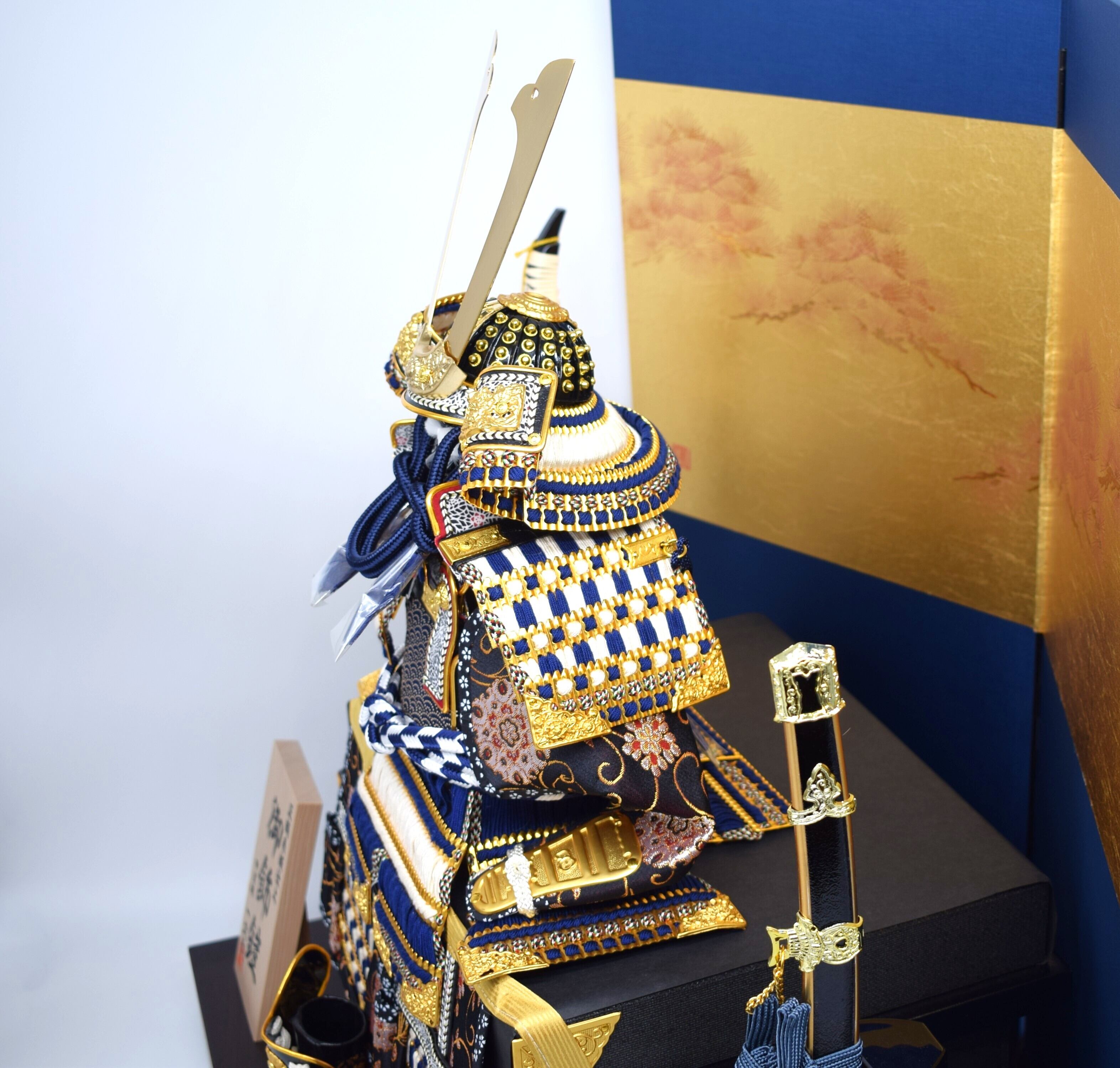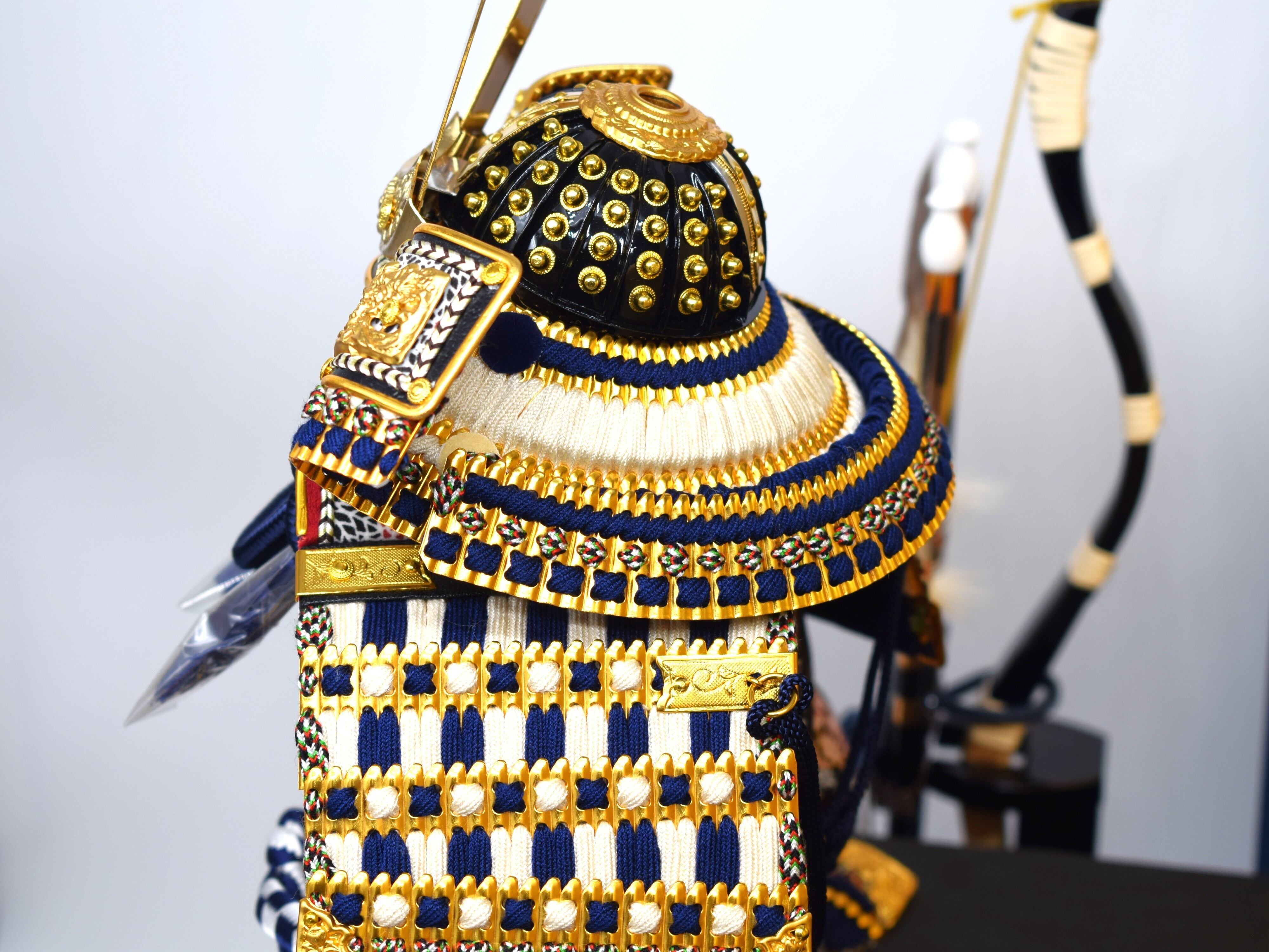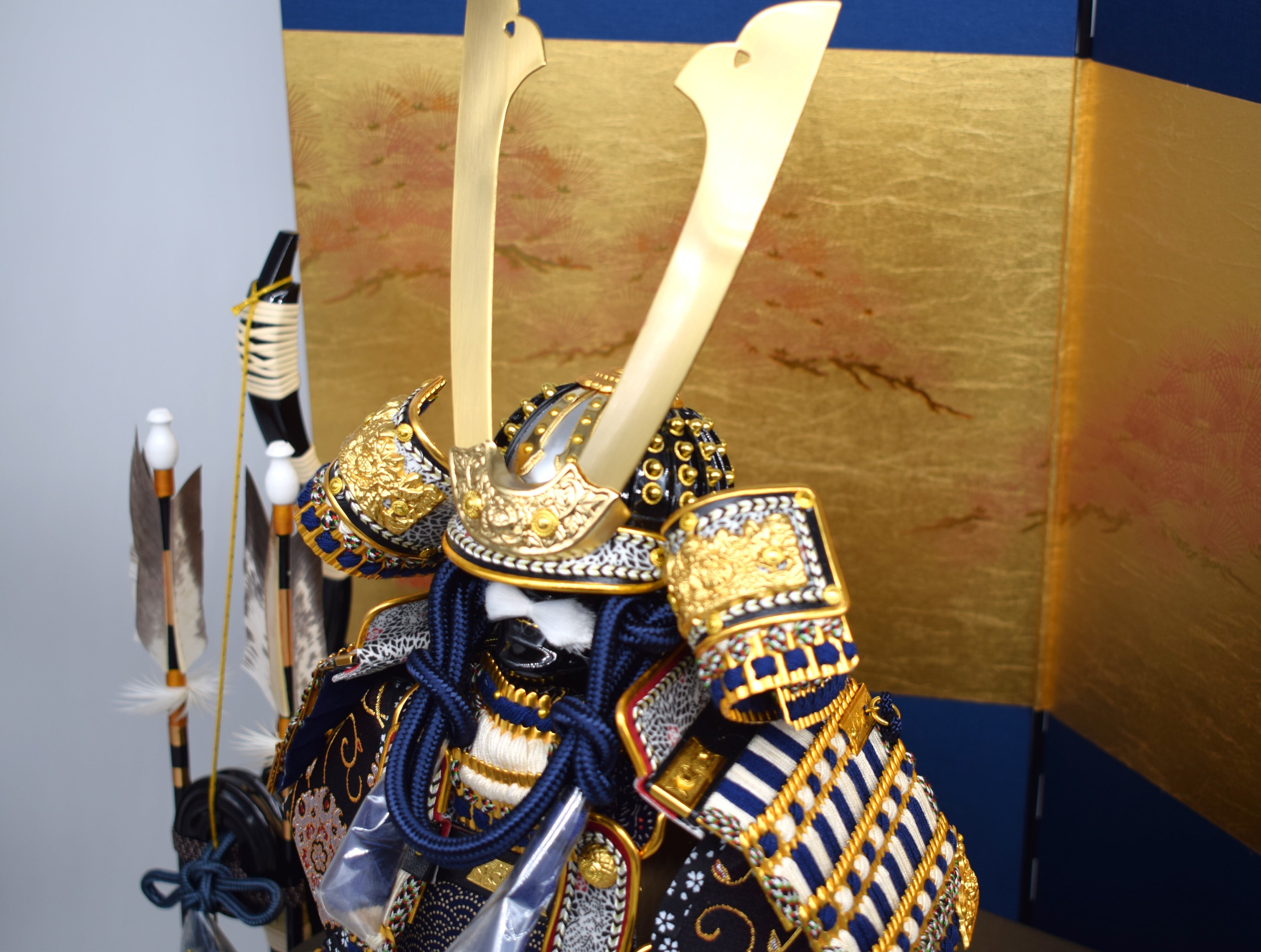 堂々とした鎧姿は、端午の節句を華やかに彩る存在感を放ちます。