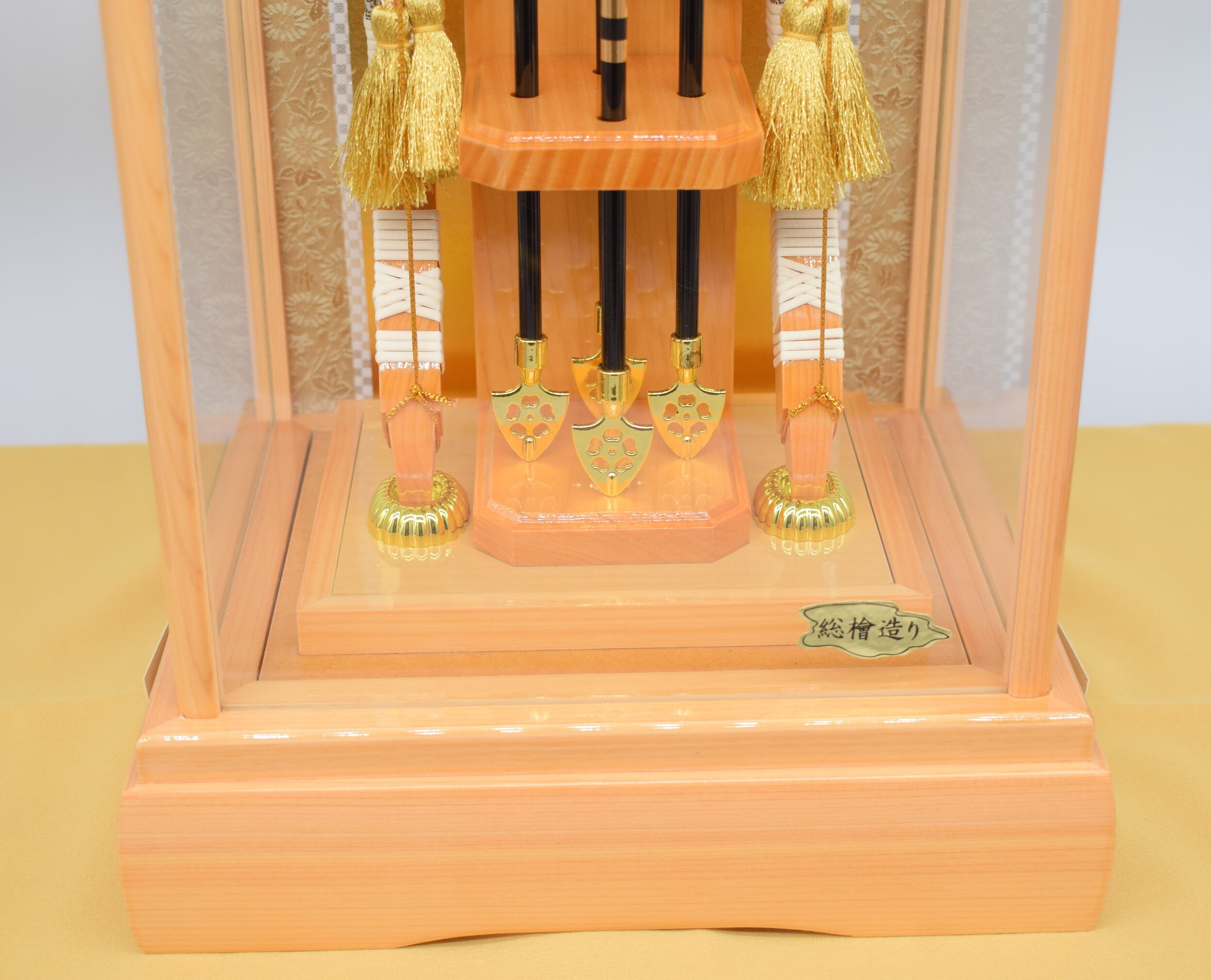 当店の総檜造り破魔弓は、製材の際に木の節の部分は使わず、美しく見える部分だけを贅沢に使用しています。