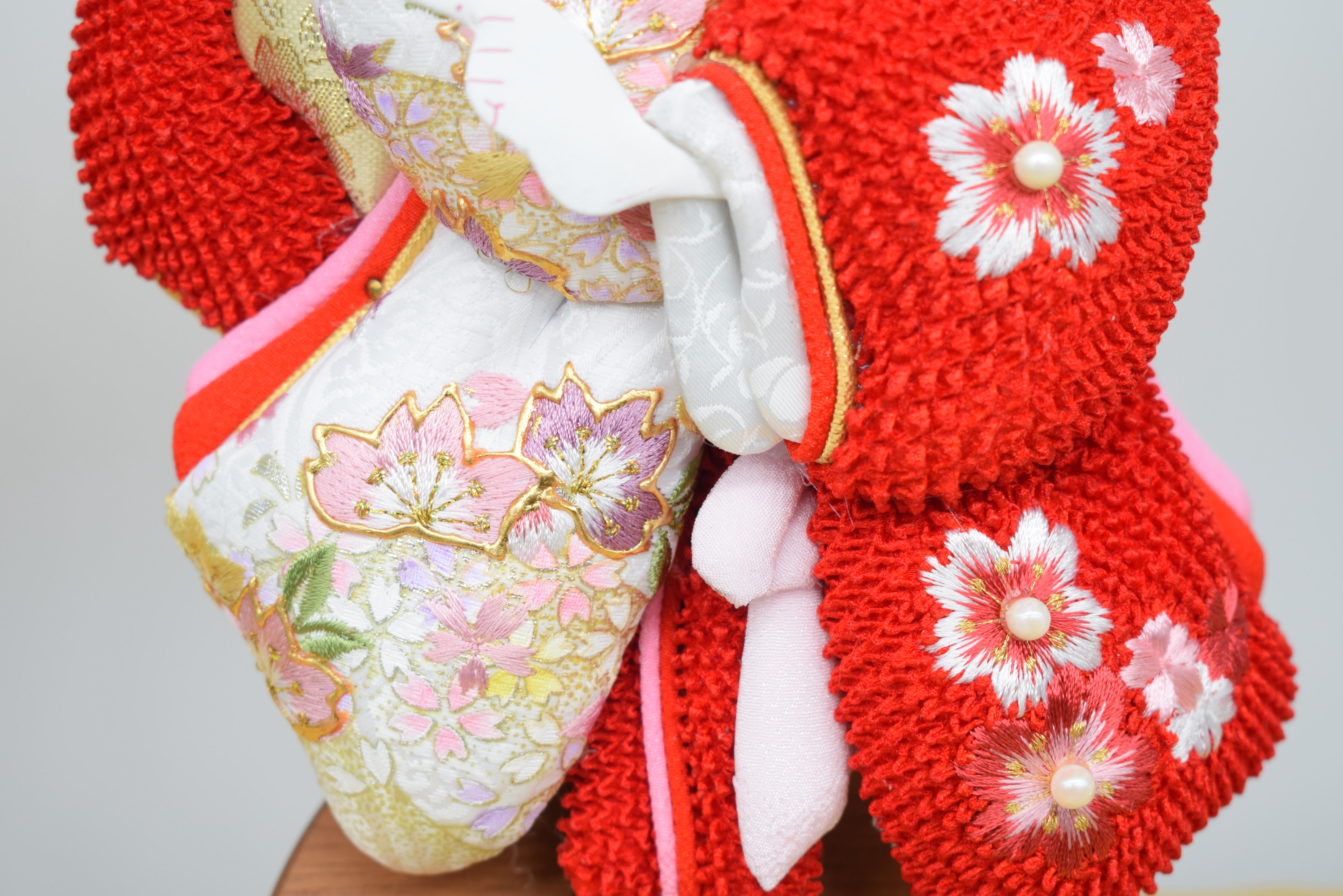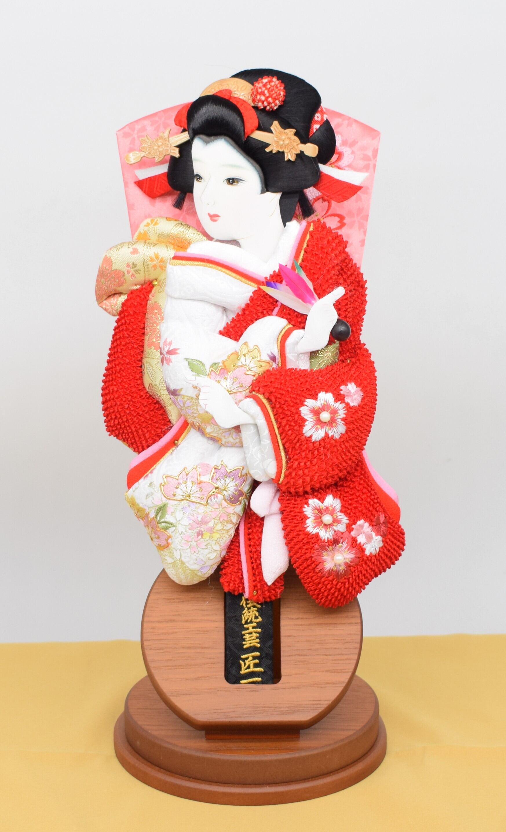 羽子板[正絹極上かのこ本真珠] 出飾り台付 10号