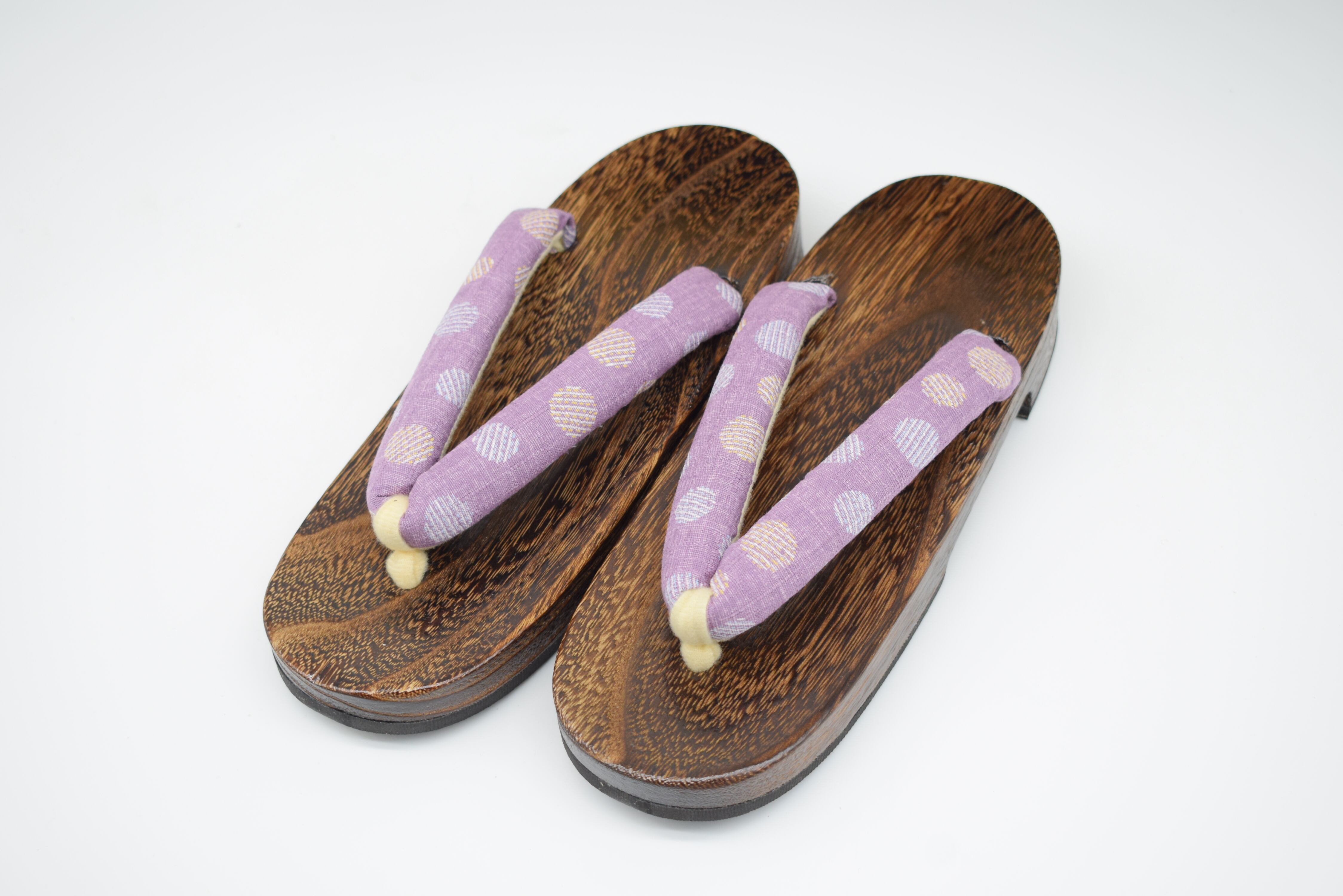 この下駄は、鮮やかな紫色の水玉模様が特徴で、あなたの足元に愛らしさと個性をプラスします。和装だけでなく、カジュアルなコーディネートにもピッタリで、どんなシーンでもあなたを一層引き立てる素敵なアイテムです。