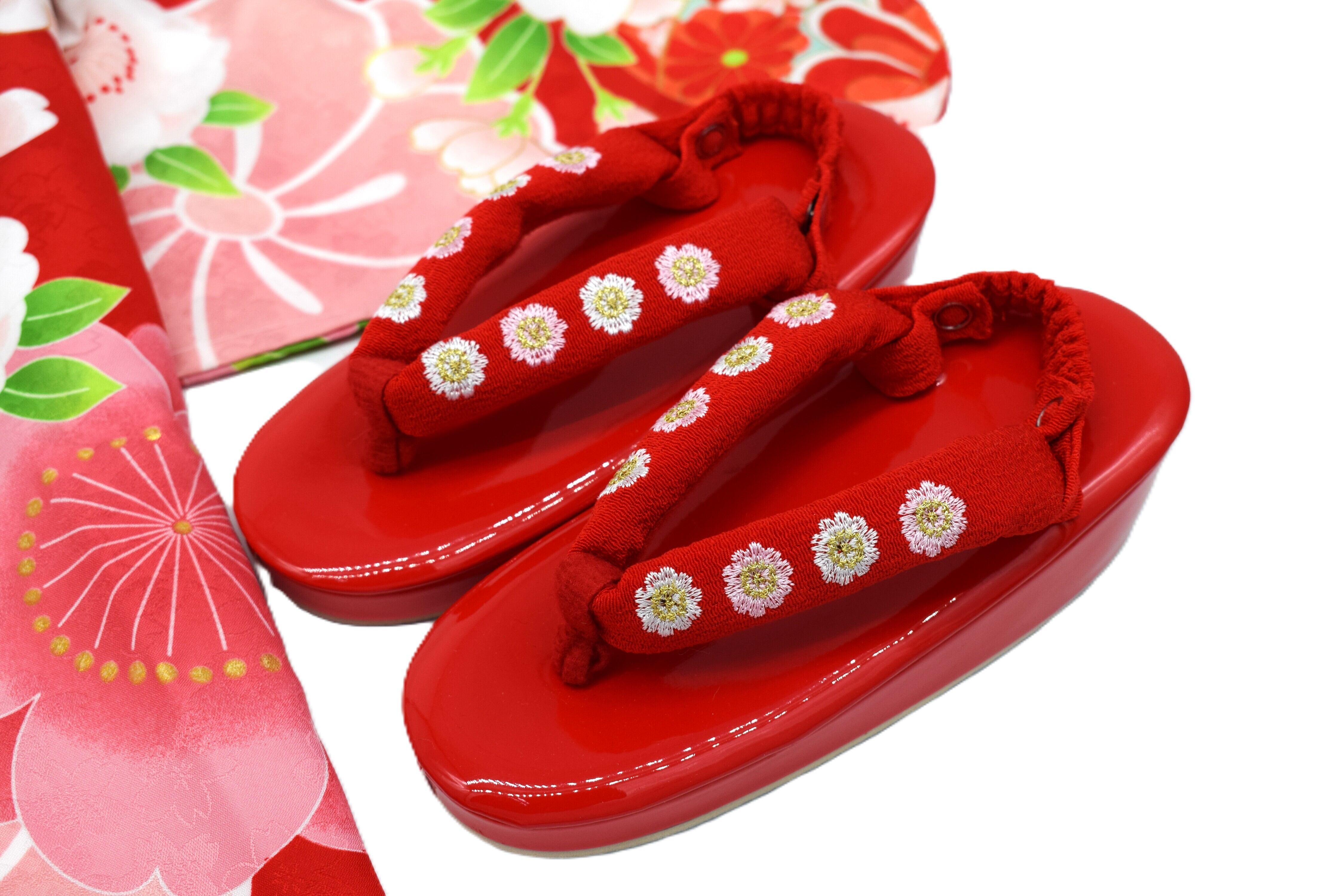 ・カラー:赤 × 白 × ピンク(華やかで伝統的な色合い)