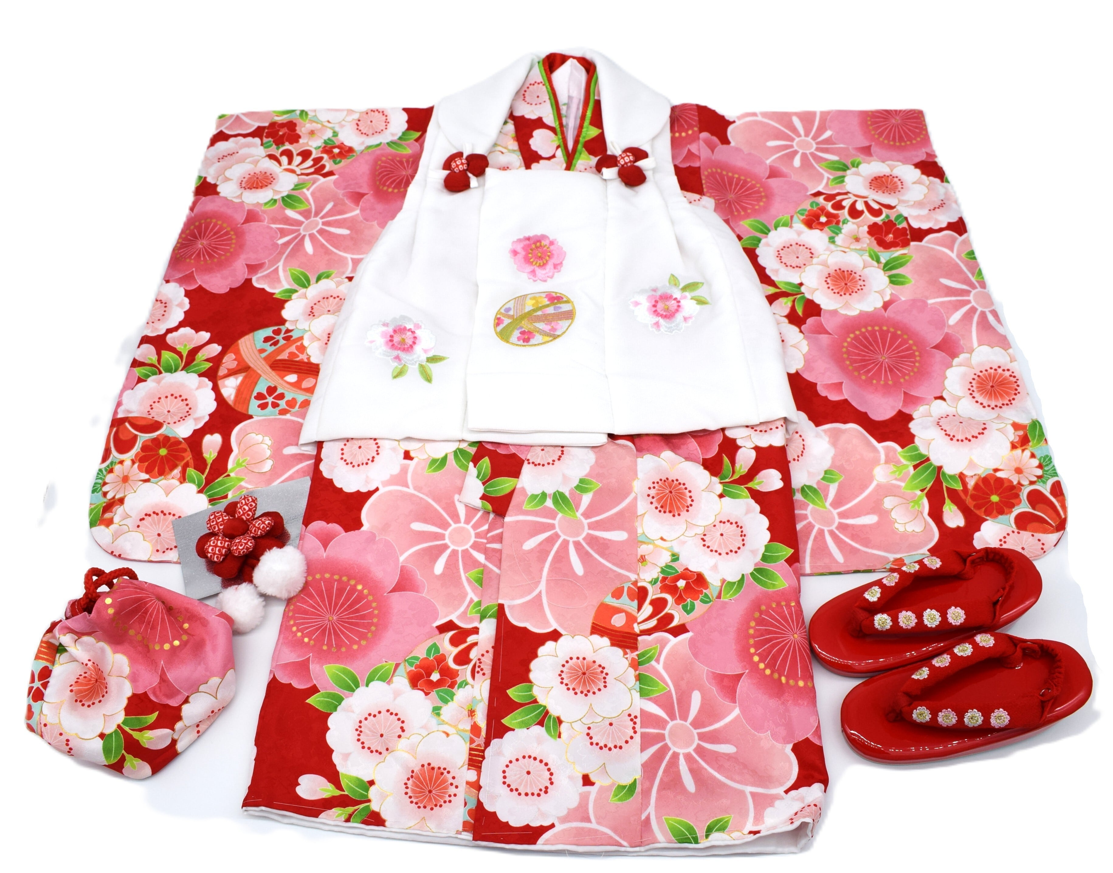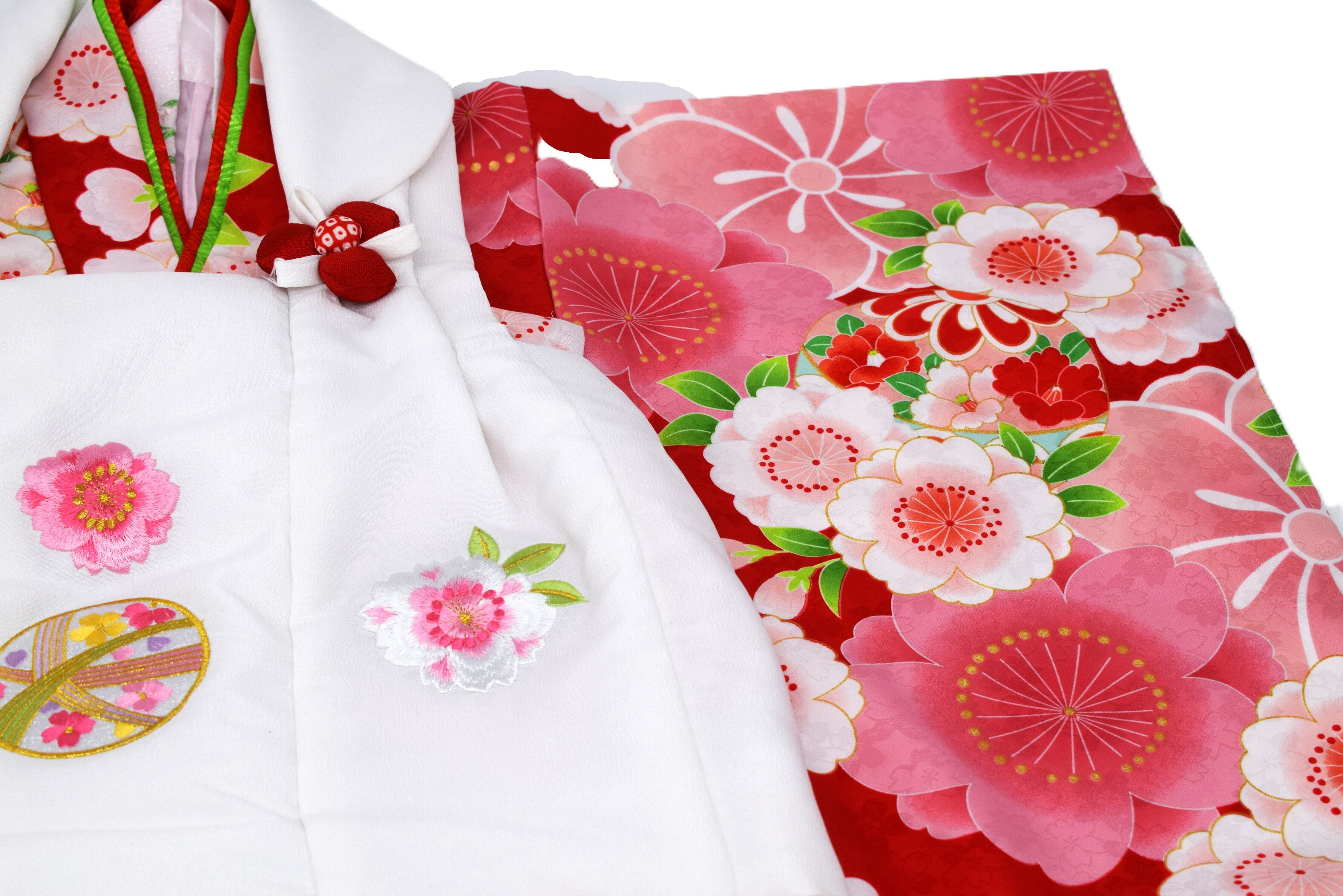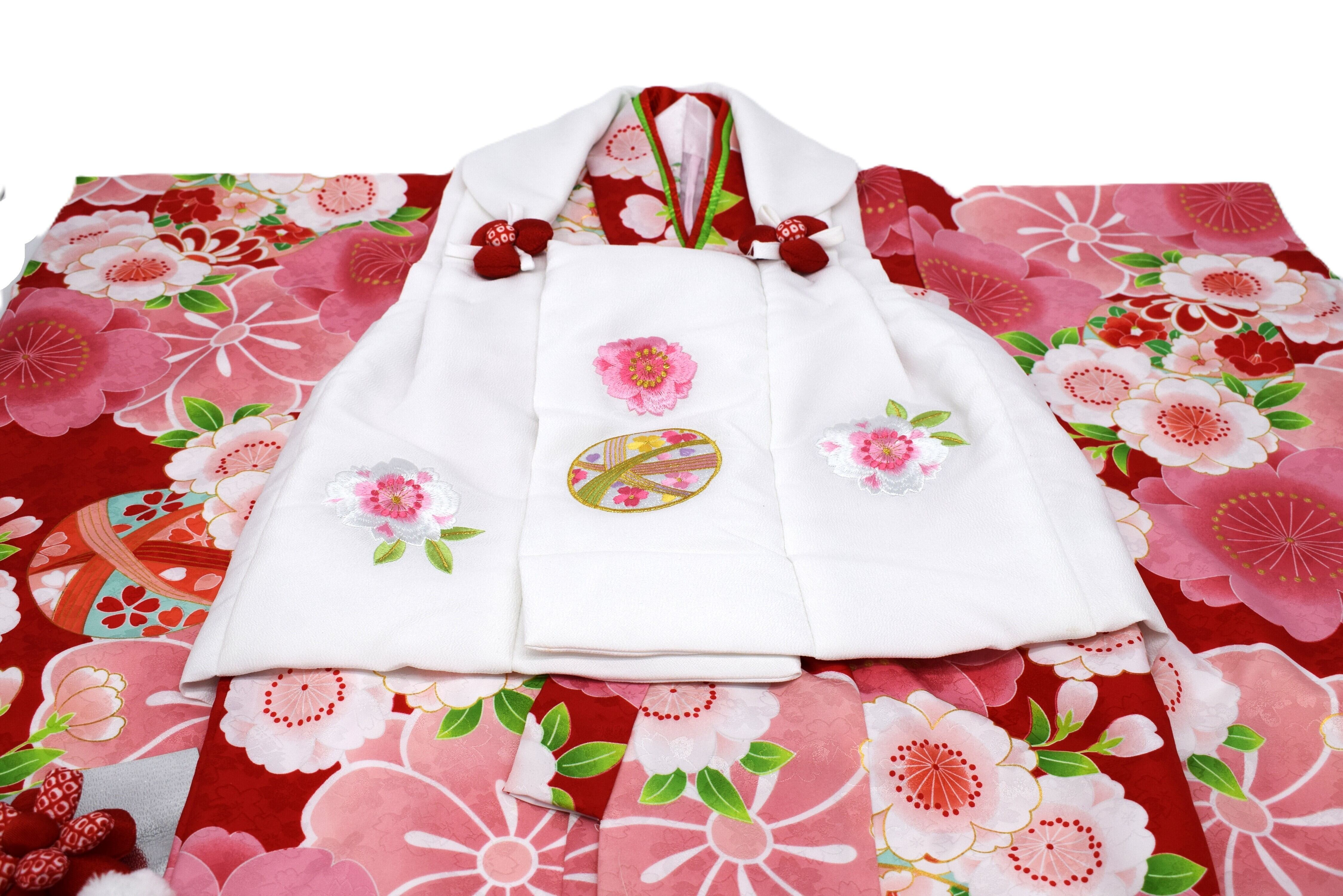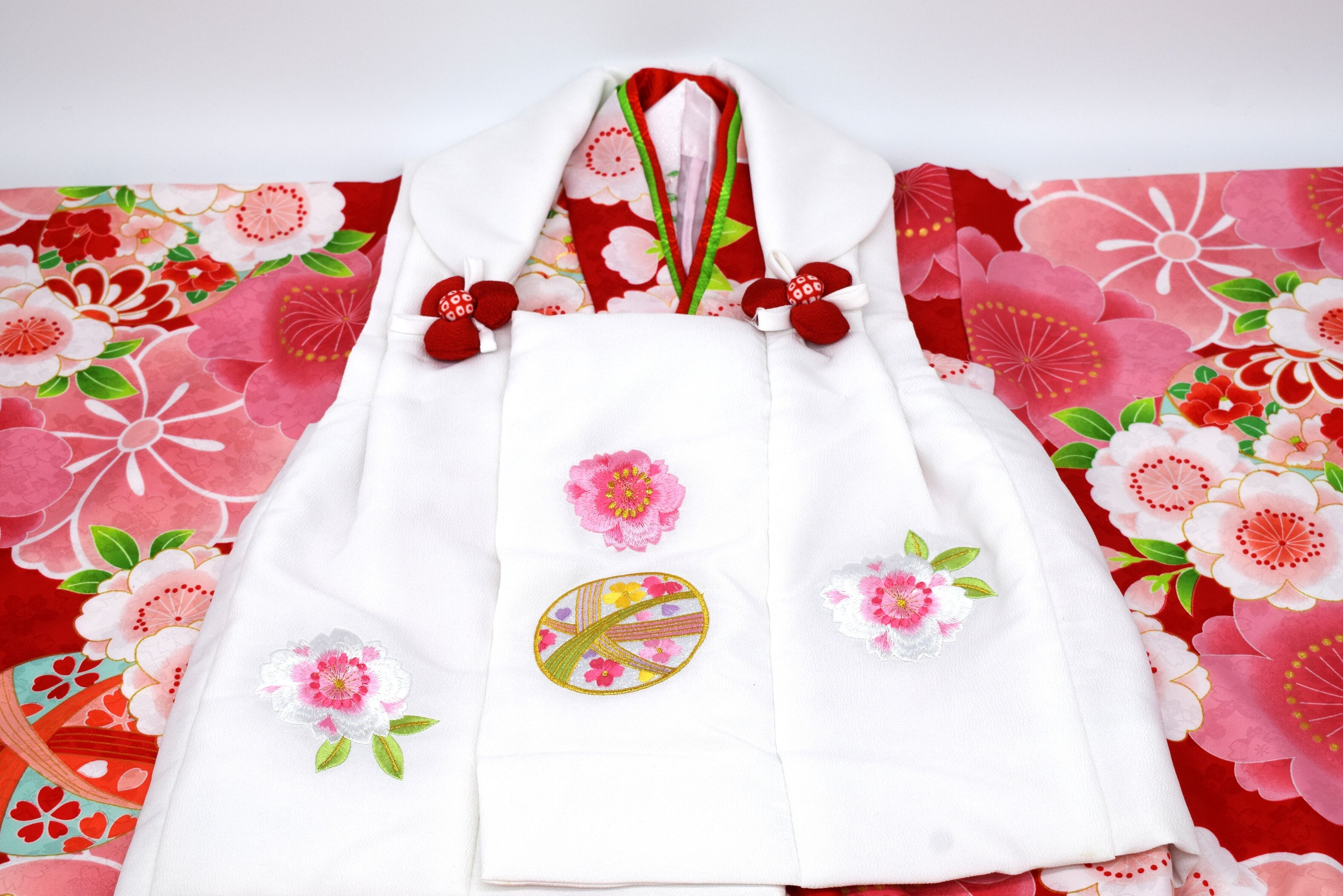 七五三 3歳 女の子 被布セット(赤×白・華やか梅柄)