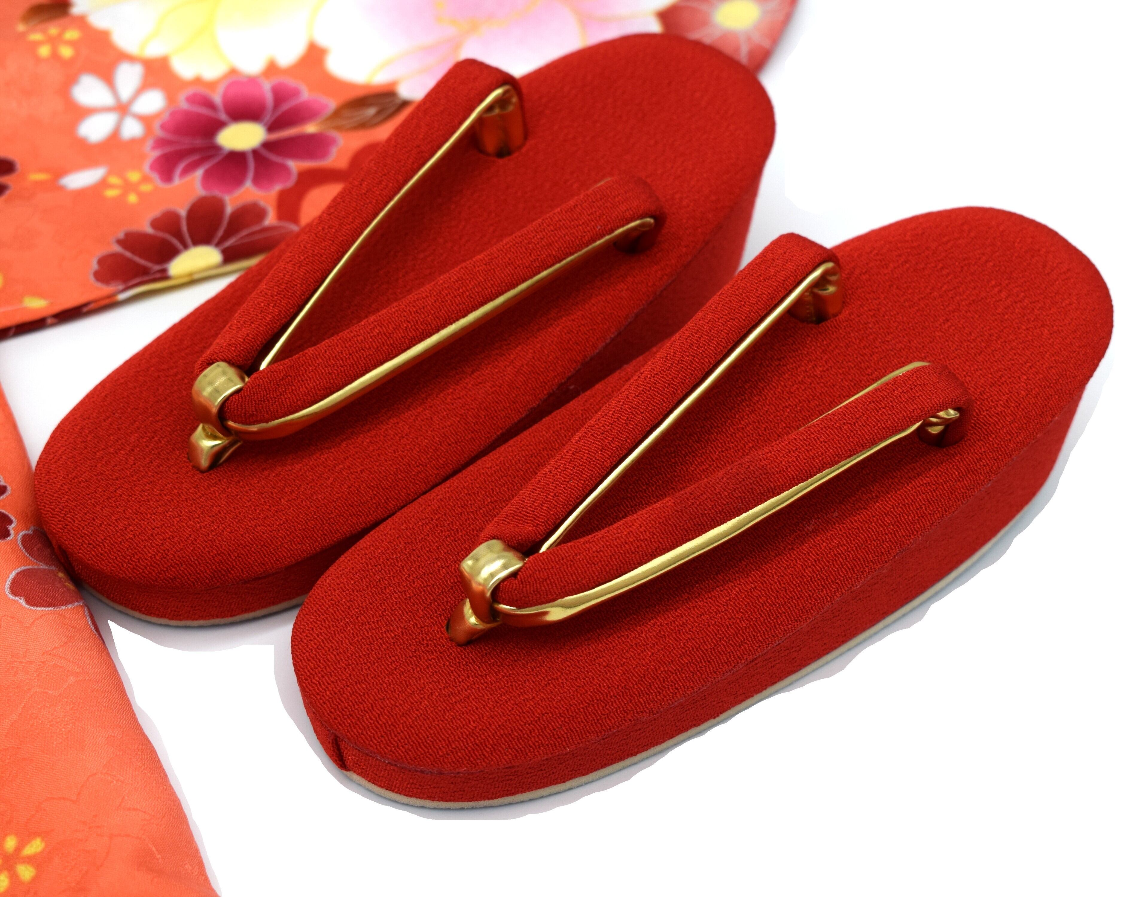 ✔ 草履(赤 × ゴールドの鼻緒)